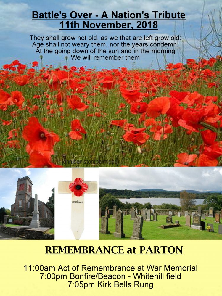 As part of a historical international event we are lighting a beacon to commemorate the centenary of the end of the Great War, and to recognise the contributions and sacrifices made by the men and women from our own community and country. The Parton Beacon will be lit at 1900 on Sunday 11th November. The beacon is to be sited on the hill to the east of Whitehill Farm, Parton, Castle Douglas, DG7 3NE Further detail can be found by downloading the following PDF. THE BATTLES OVER